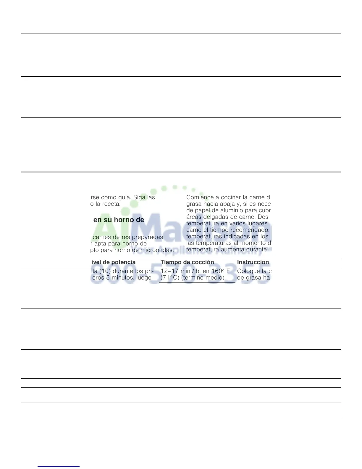 Carne Nivel de potencia Tiempo de cocción Instrucciones