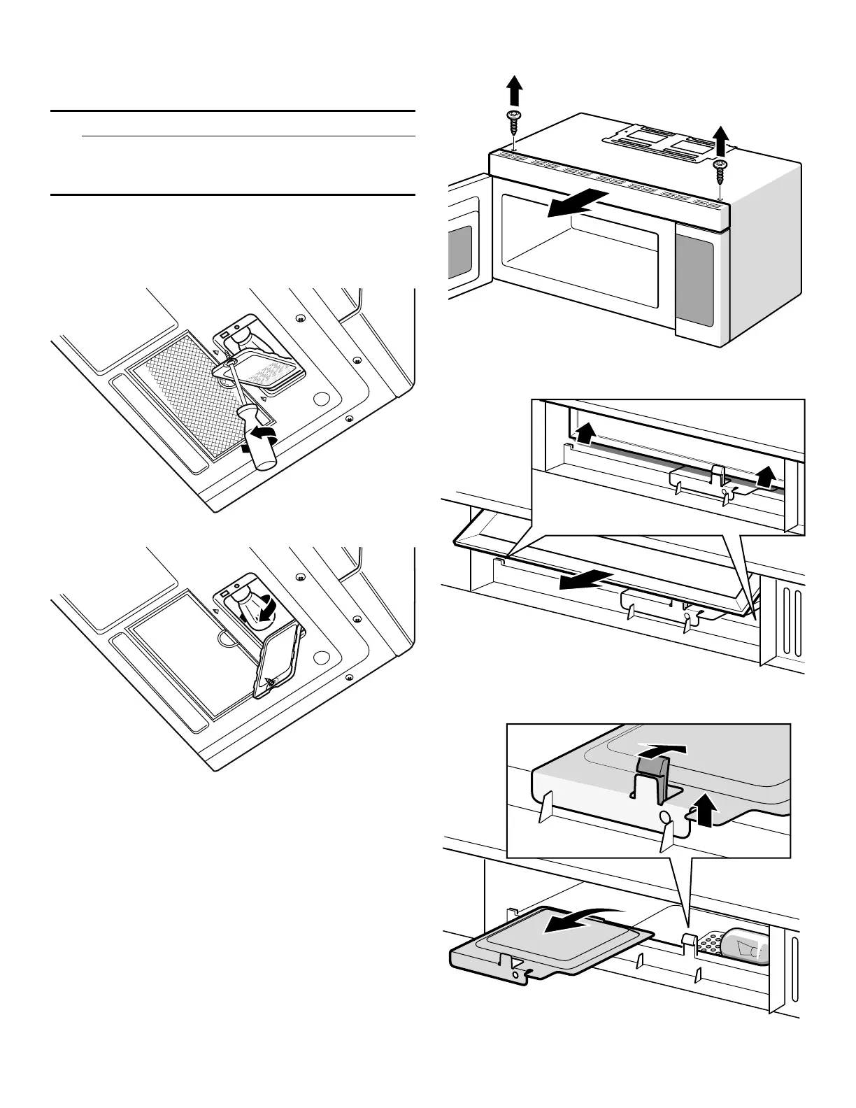 Unplug the microwave oven or turn off power at the