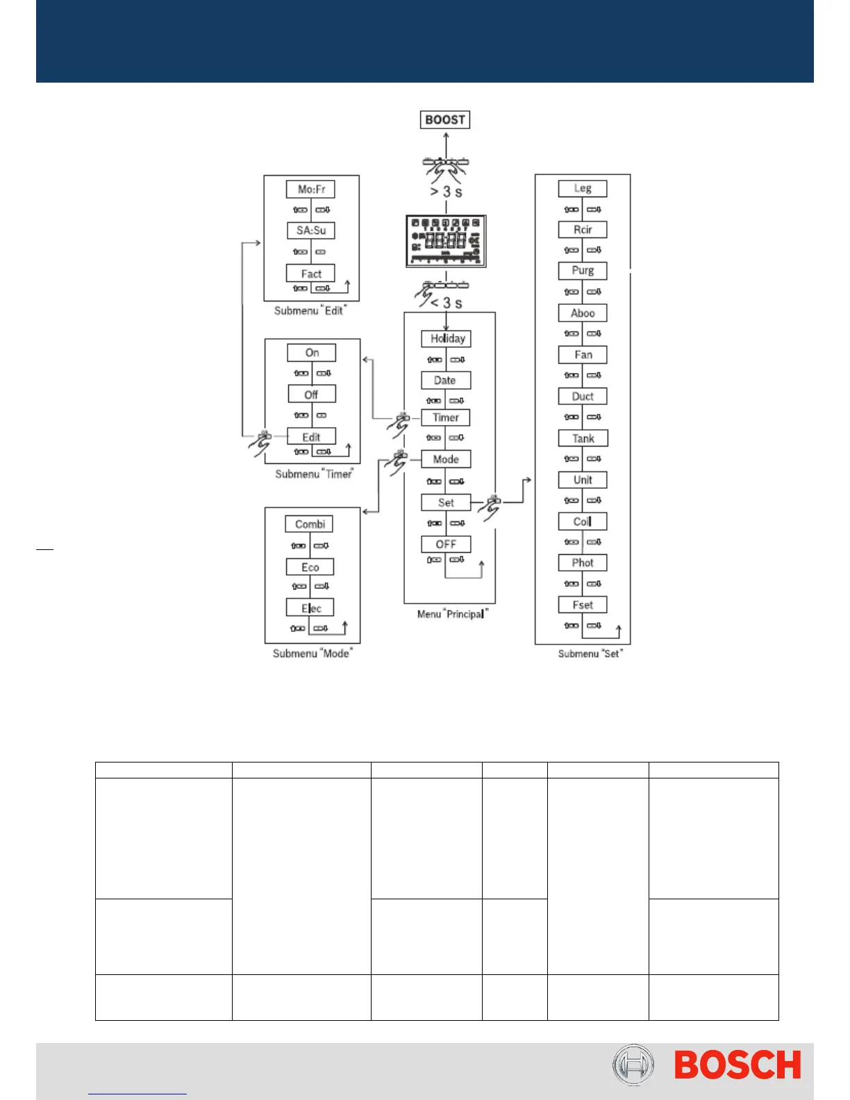 Bosch HP270-2 - Parameters Overview in Main and Sub Menu of HP270-3; HP200;250-1