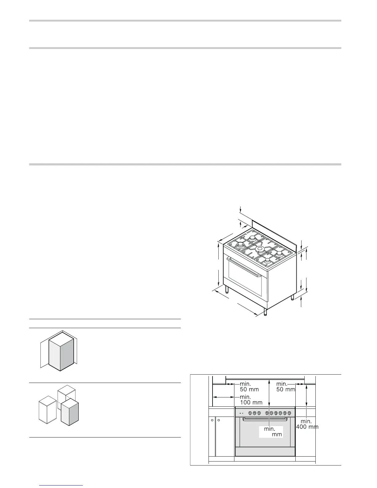 ■ de afstanden tot aangrenzende meubels