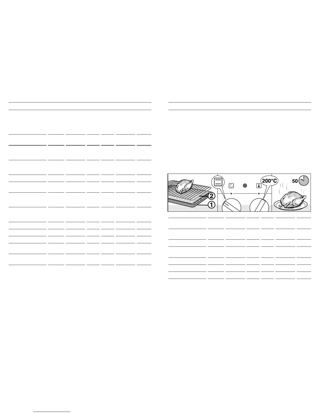 Die Tabelle gilt für das Einschieben in den kalten Backofen.