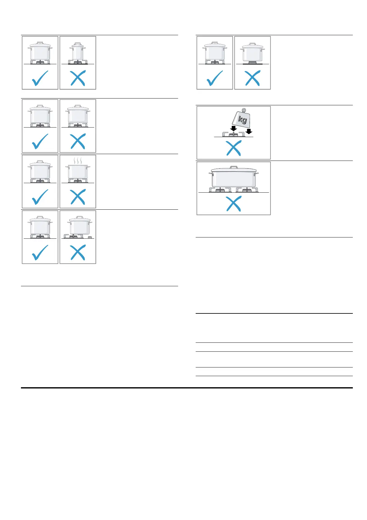 ware must not protrude over the edge of the hob.