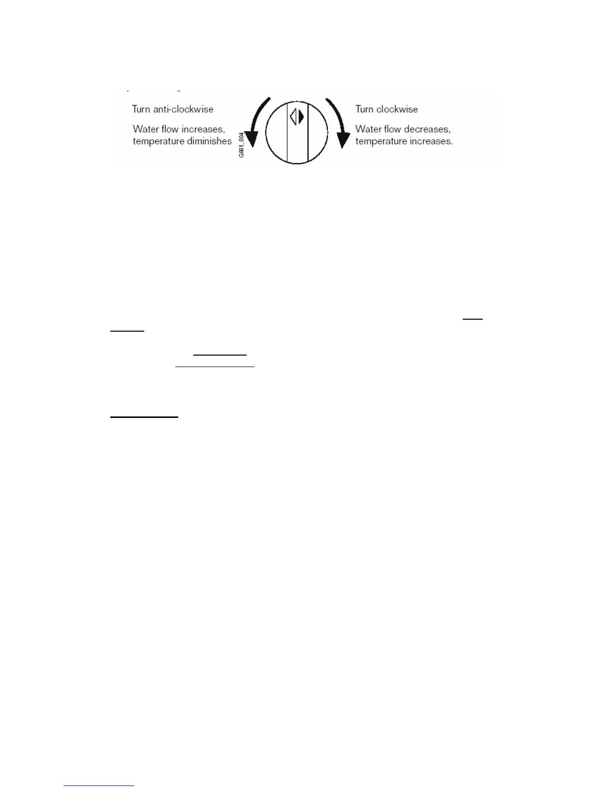 Turn anti-clockwise Water flow increases, temperature diminishes
