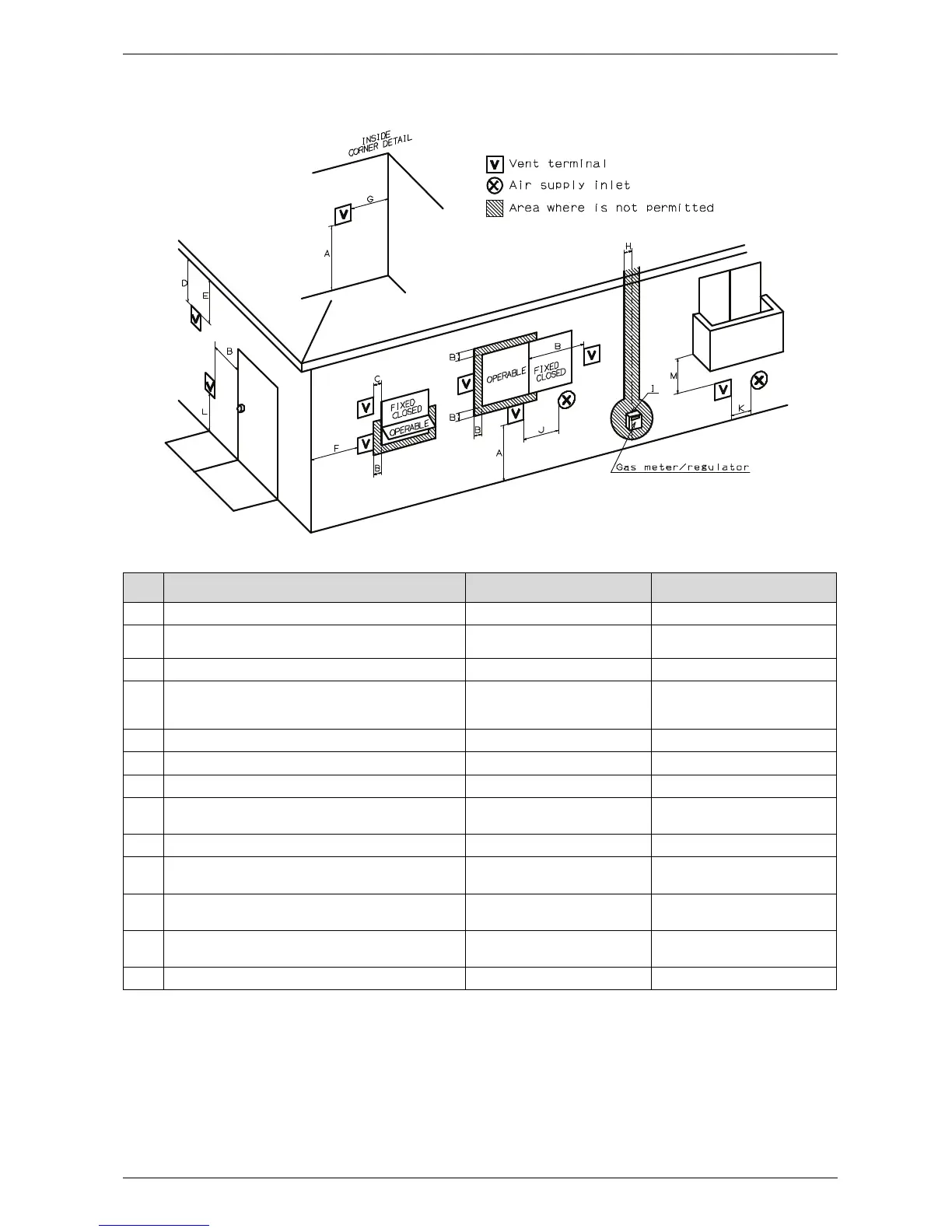 J Clearance to non-mechanical air supply inlet to building or the