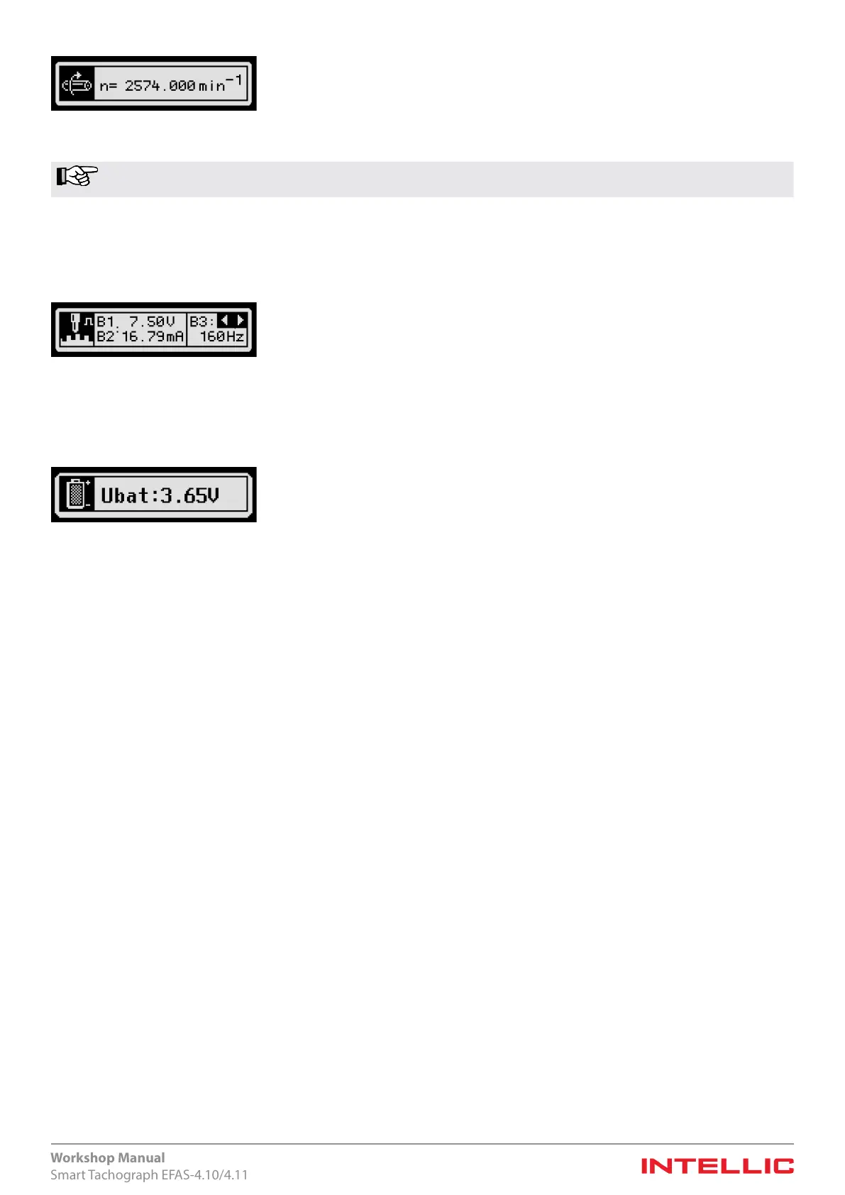 This test function is used to verify the motion sensor interface on pins B1 to B4. The display shows the voltage and current of the