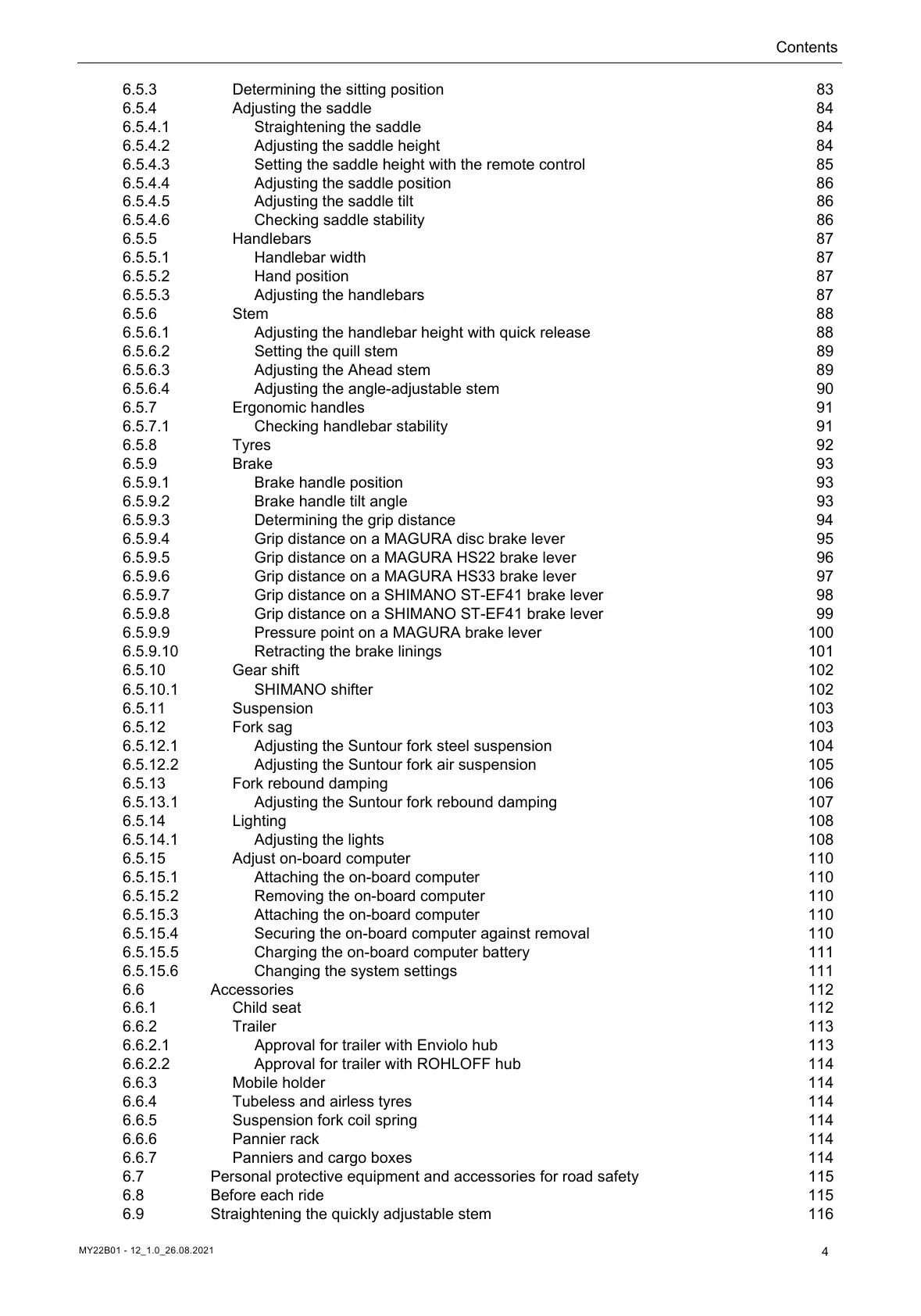 6.6.7 Panniers and cargo boxes 114
