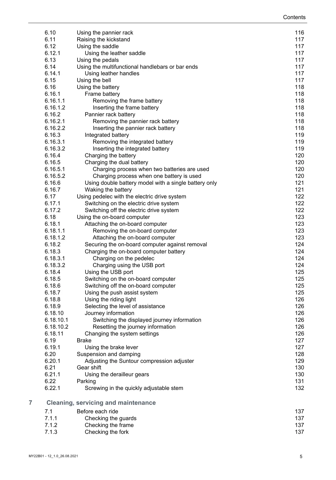 7.1 Before each ride 137