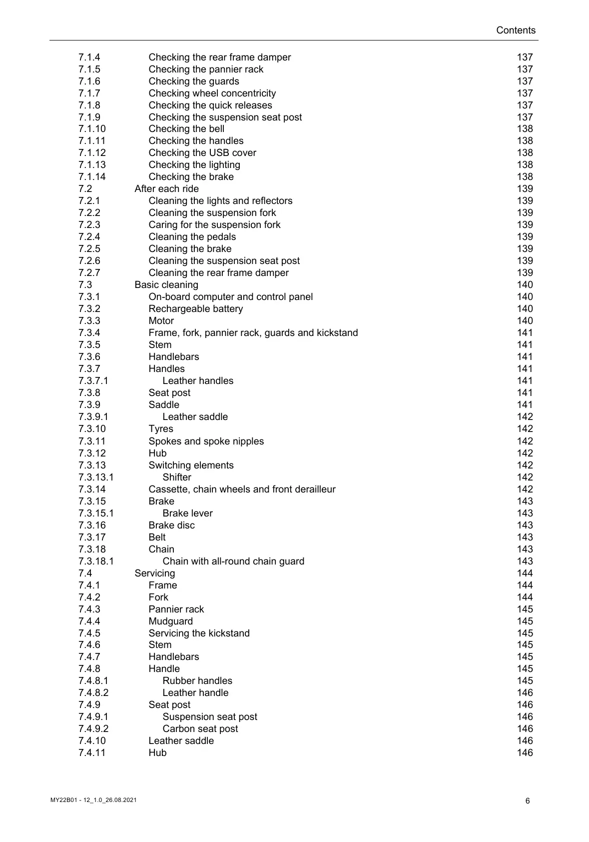 7.3.14 Cassette, chain wheels and front derailleur 142