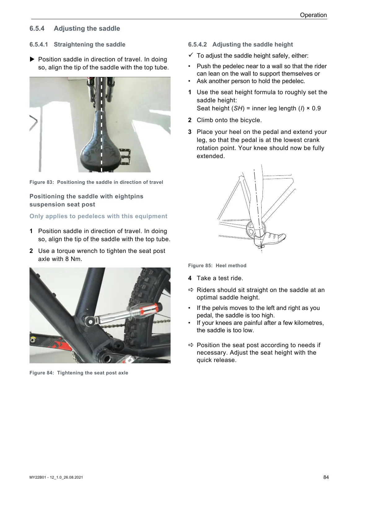 6.5.4.2 Adjusting the saddle height