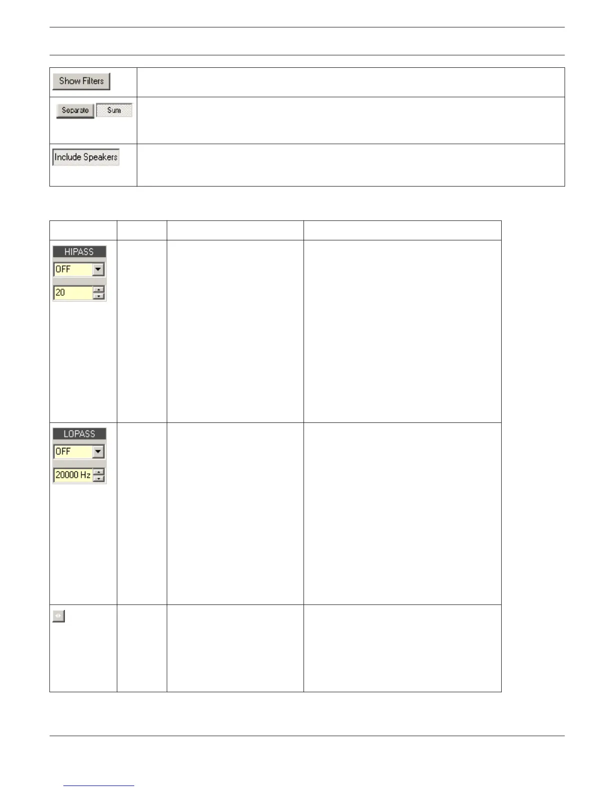 Separate displays the transmission function of each frequency band separately. Sum shows an