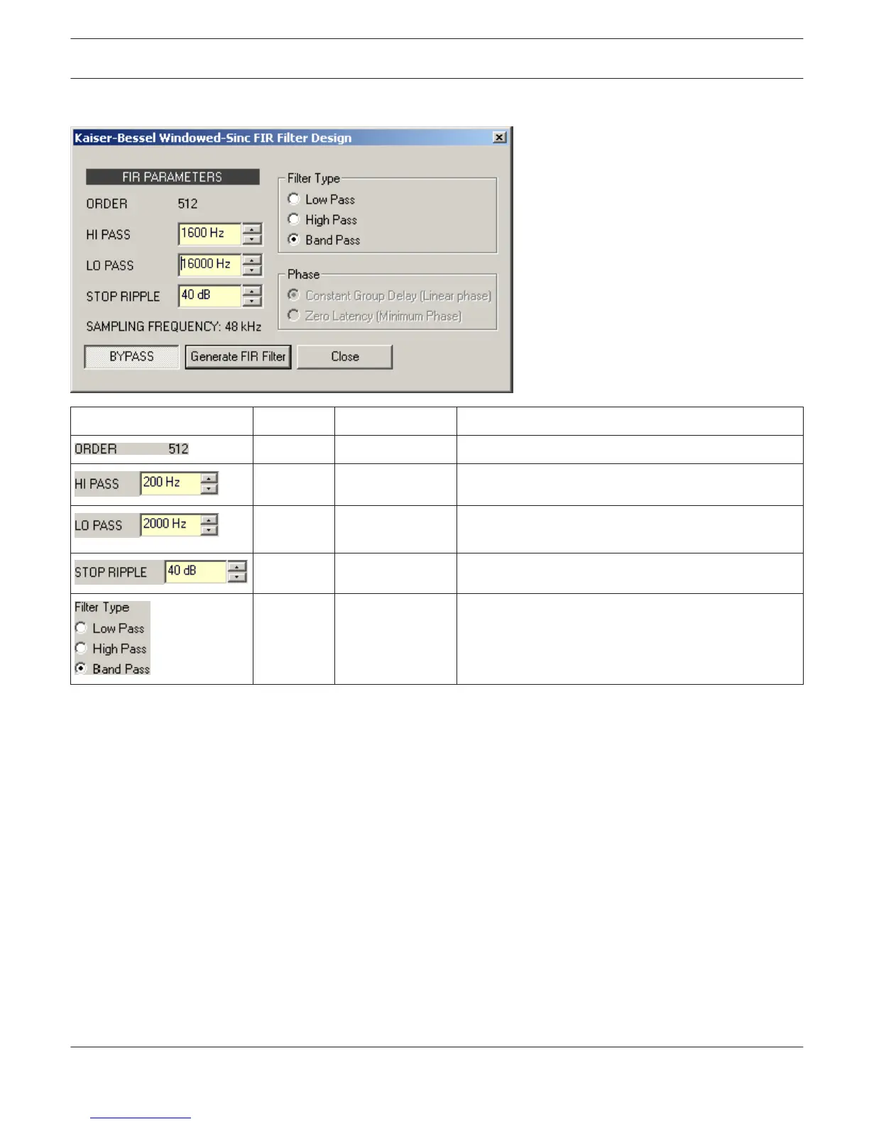 40 dB 21...100 dB STOP RIPPLE sets the slope of the FIR filter.
