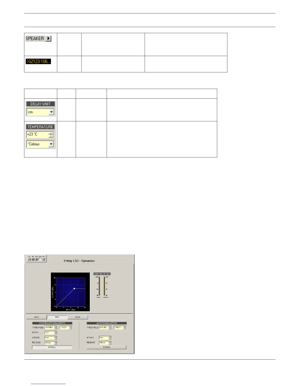 The Dynamics window provides access to a compressor and a limiter for each way. This allows setting the