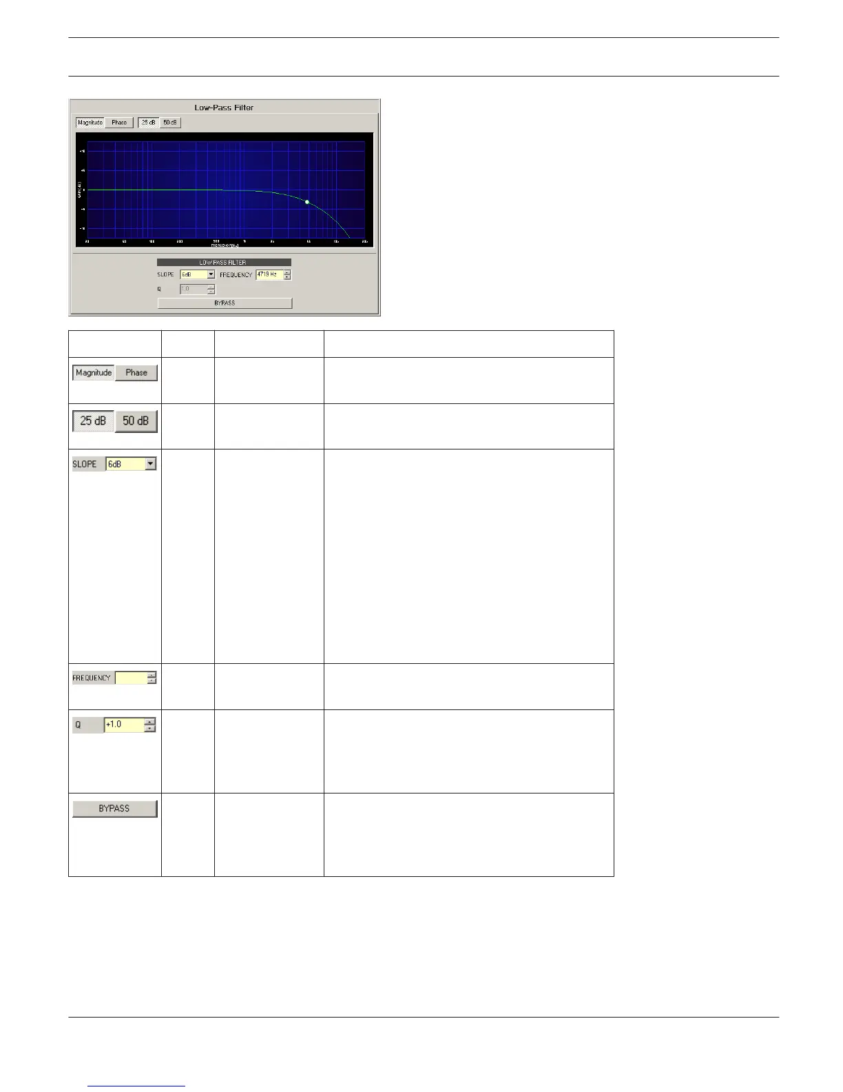 mouse button on this dot and keeping the mouse button pressed down allows changing the filter’s frequency by