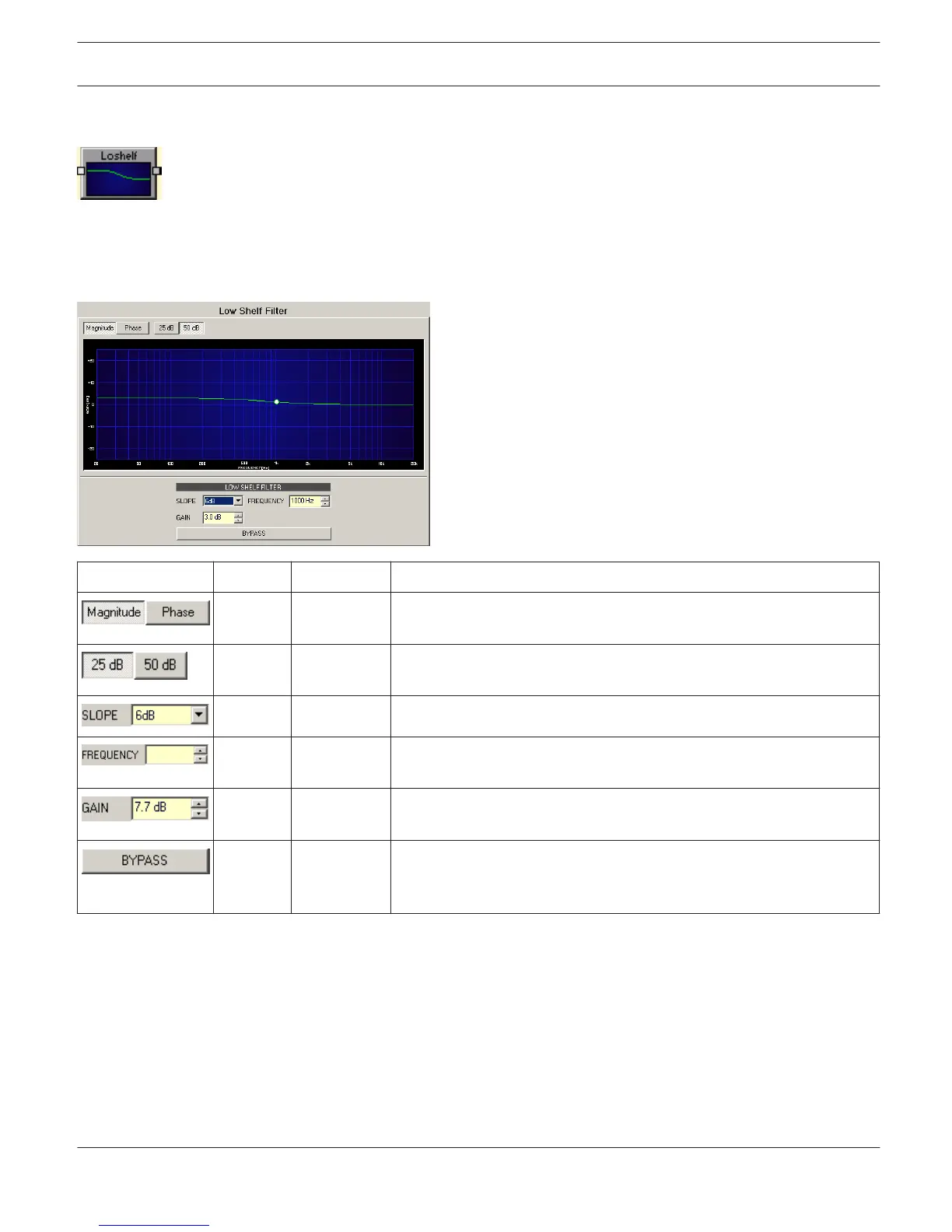 6dB 6dB, 12dB SLOPE sets the transition band slope of the low shelf filter.