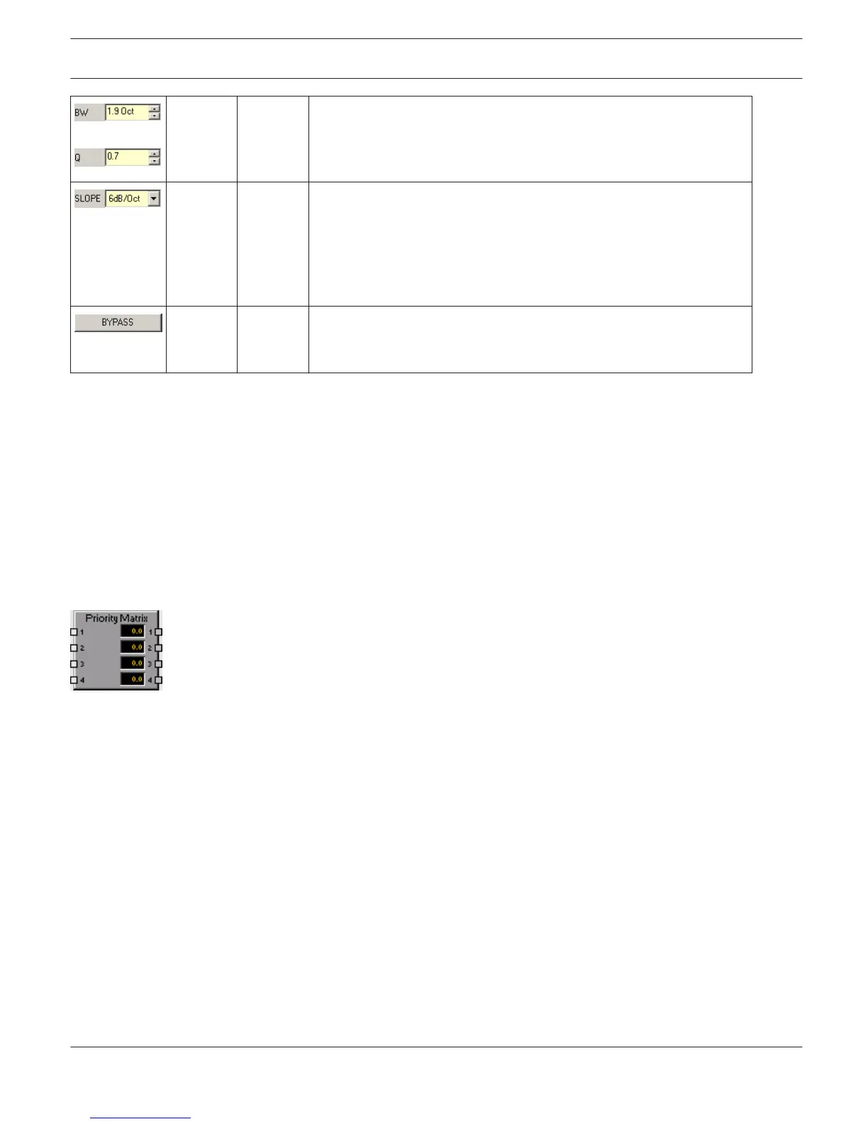 The Priority Matrix DSP block is an extended Matrix Mixer. Clicking with the left mouse button onto the
