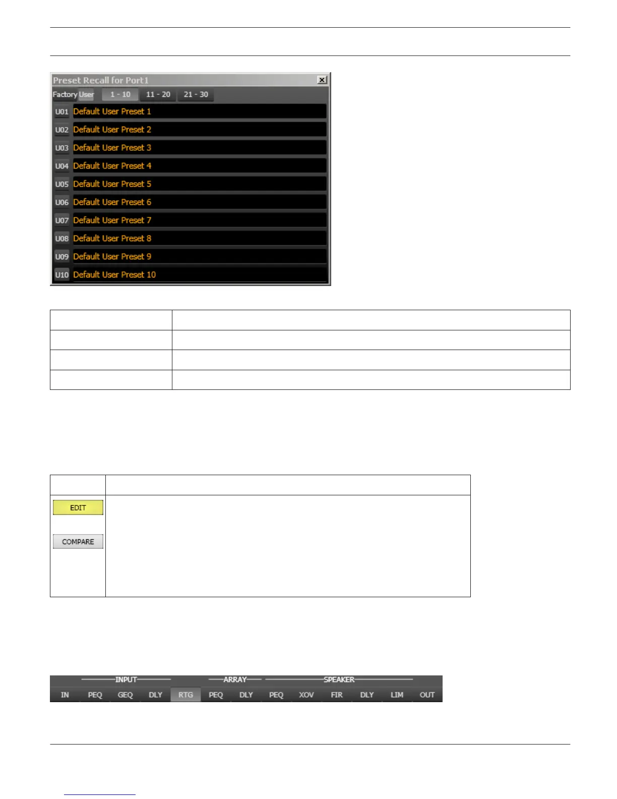 Factory / User Switch between the Factory Presets or User Presets.