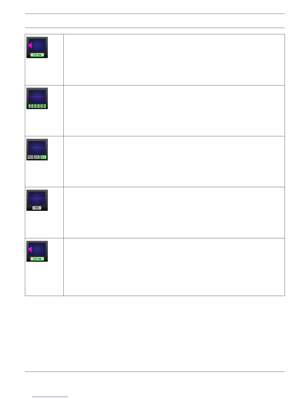 frequency response that results from the set FIR parameters. The LED indicate if the FIR Filter is