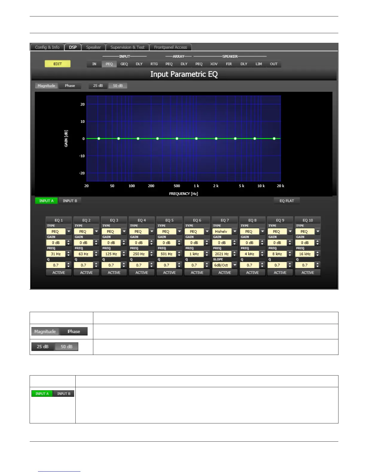 copying all EQs of the corresponding output to any other DSP 600 Input PEQ filter bank within the