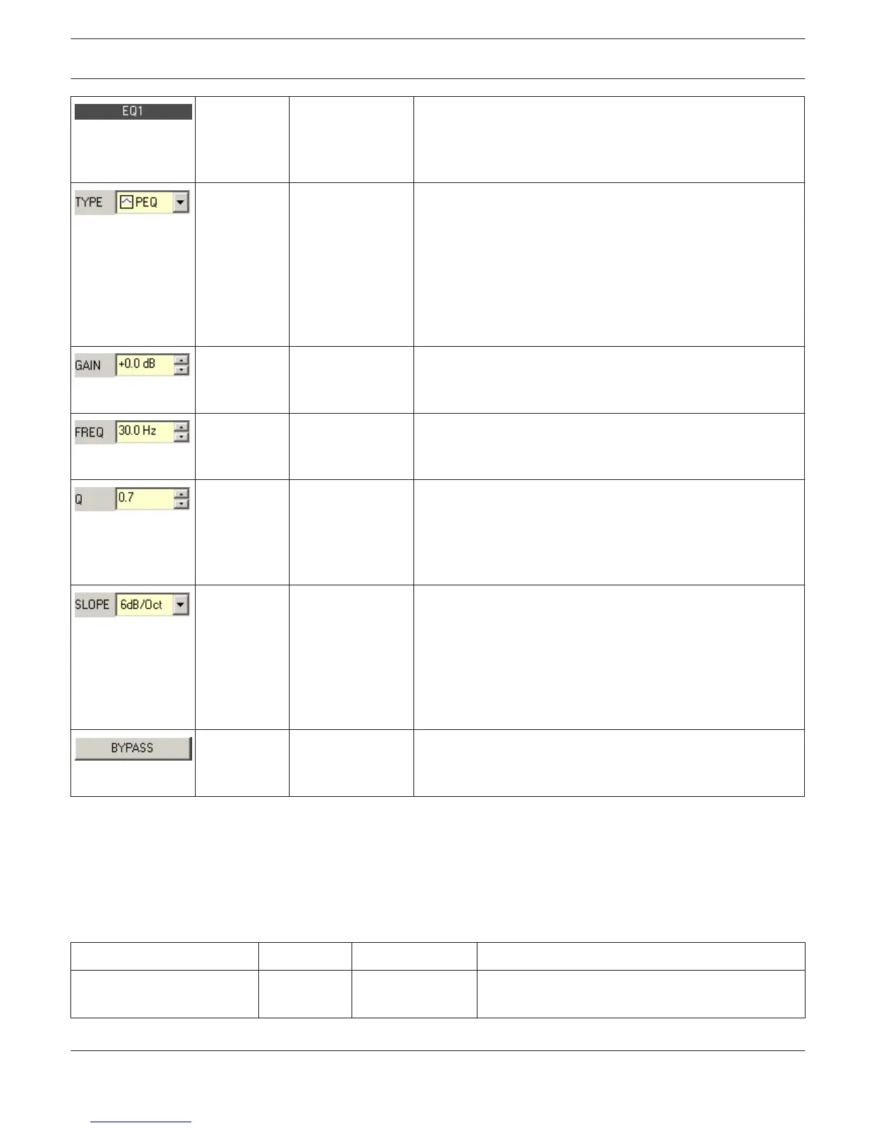 – PEQ is a parametric Peak Dip Filter with its frequency,