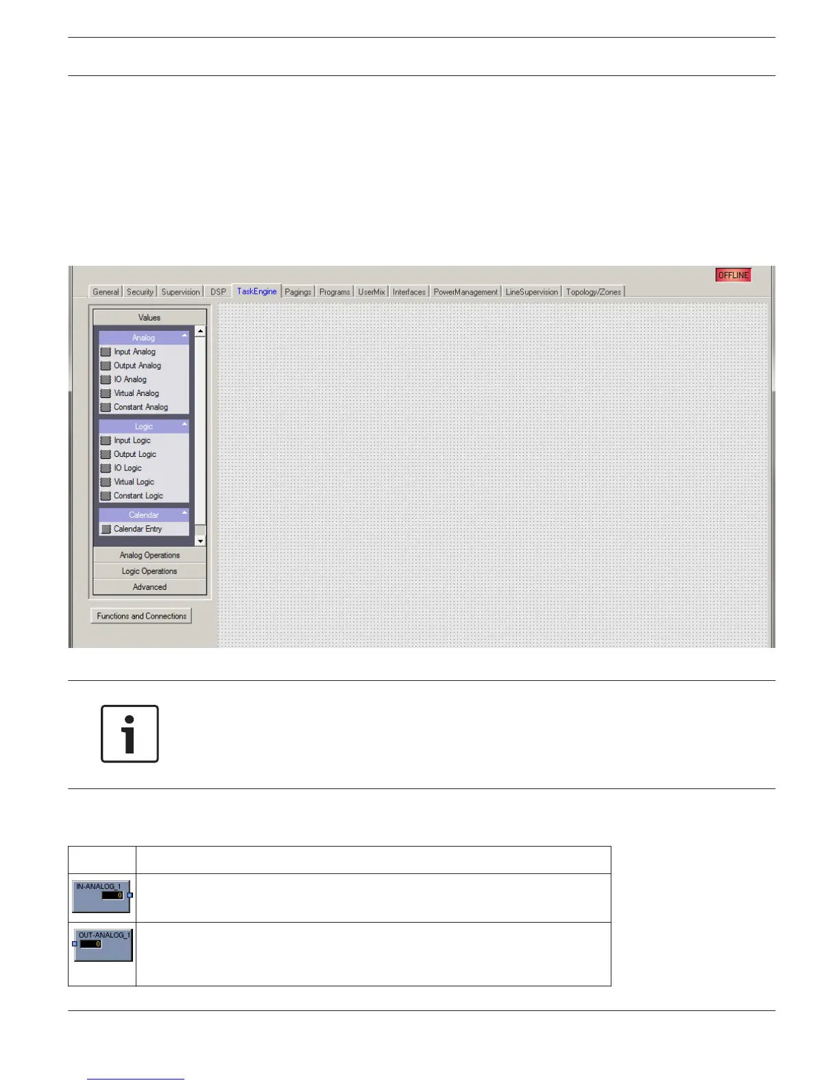 Configuring the Task Engine as well as wiring DSP blocks is possible only in offline mode. Please refer to section “How