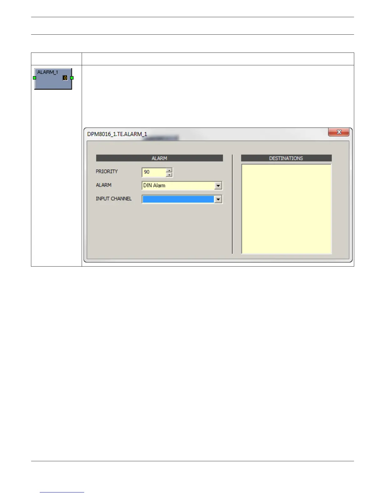 The Alarm block is used to trigger an alarm. Double click the block to edit the alarm settings (see