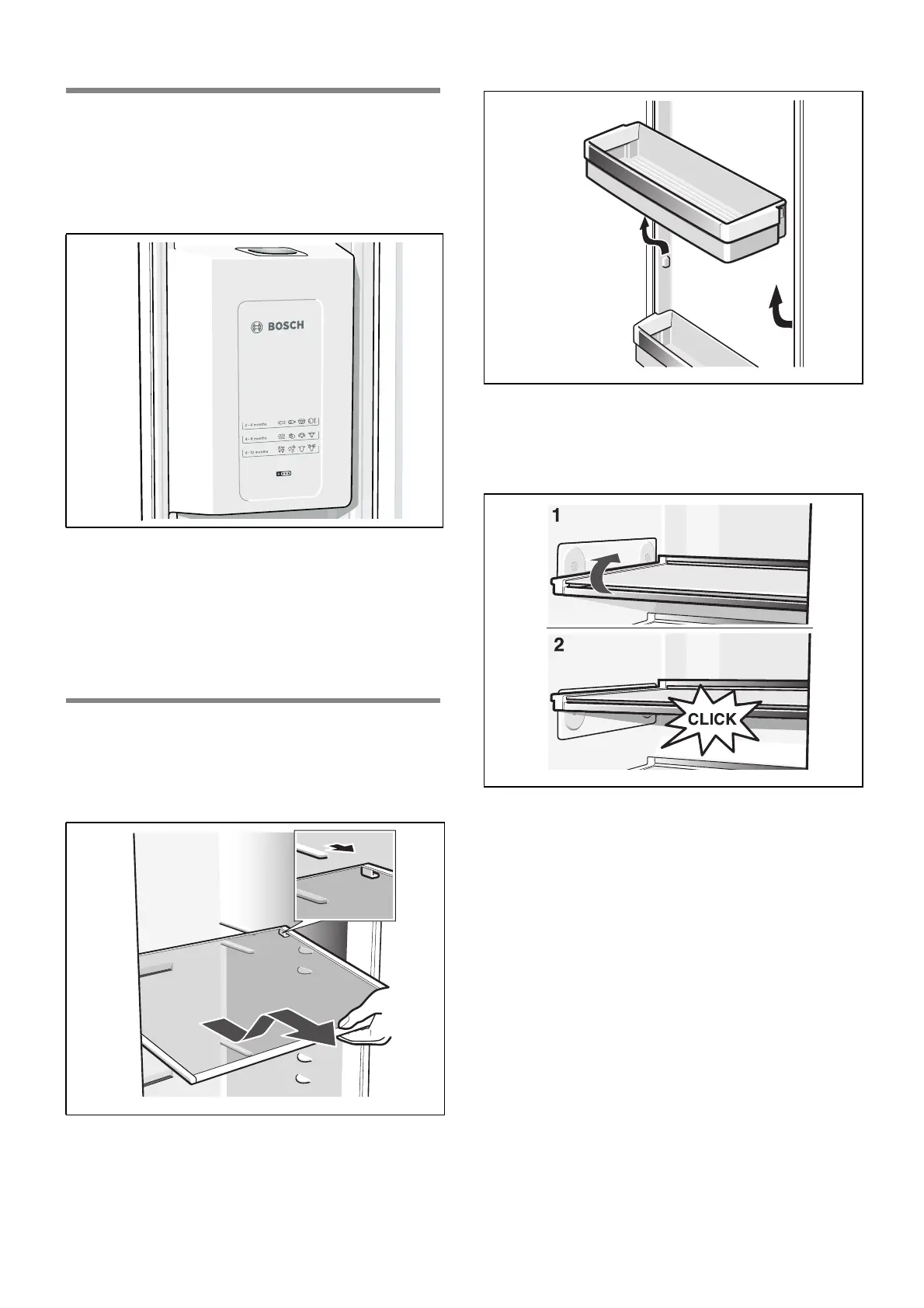 ■ Pull shelf forwards, lower and swing out to the side.