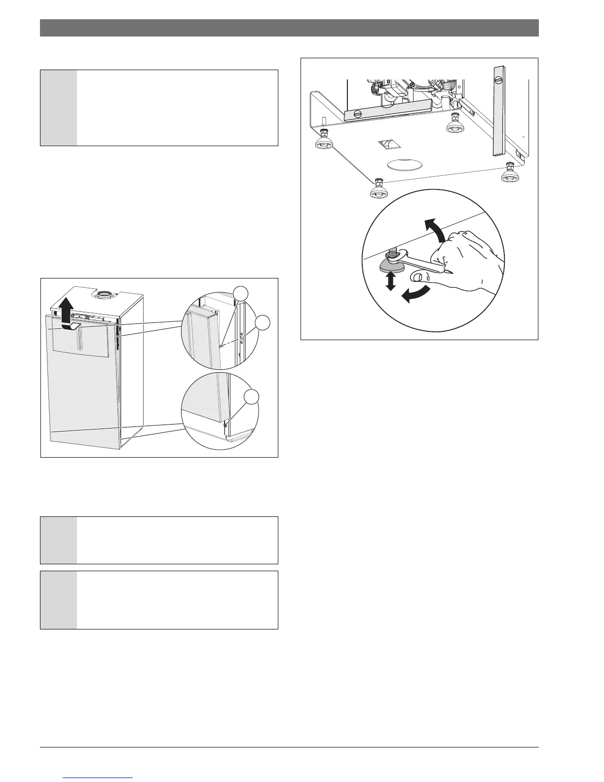 ▶ Adjust the boiler feet until the boiler is level vertically and