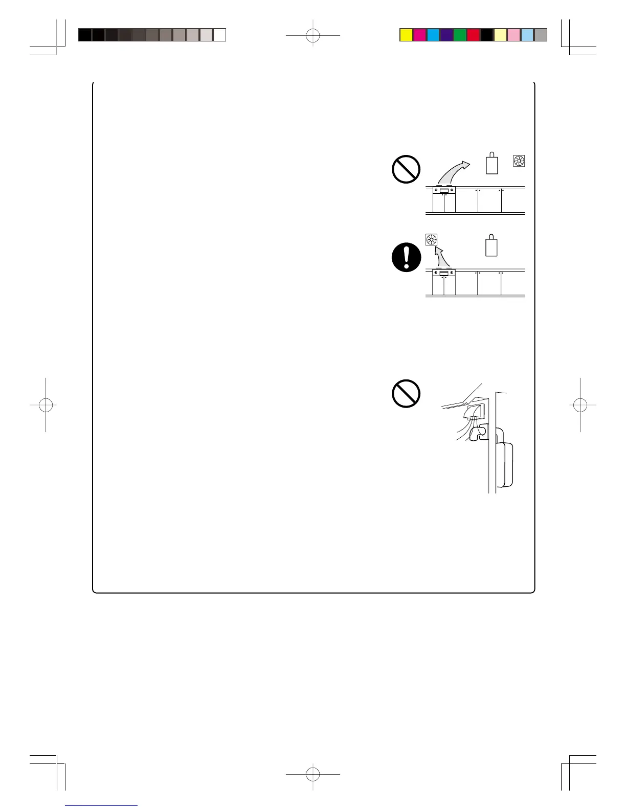 • Avoid installation between the kitchen fan and stove. If oily