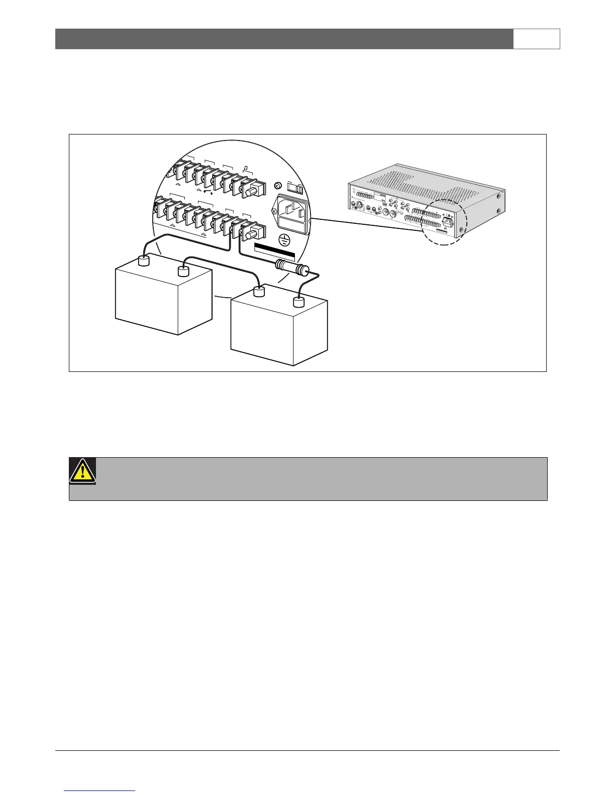 The system pre-amplifier has a 24 Vdc input (terminal screw), which you can use to connect a back up power
