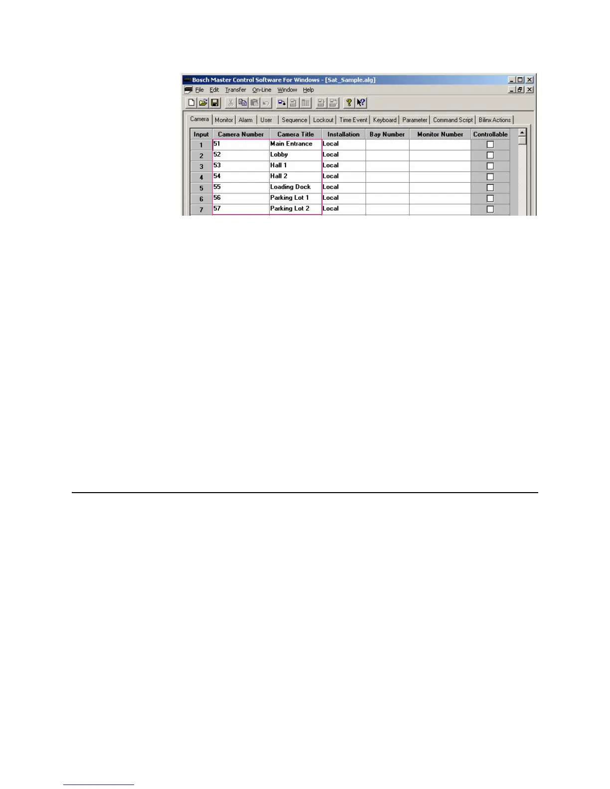 At the main site, the Camera ID Table must be programmed to ensure proper satel-