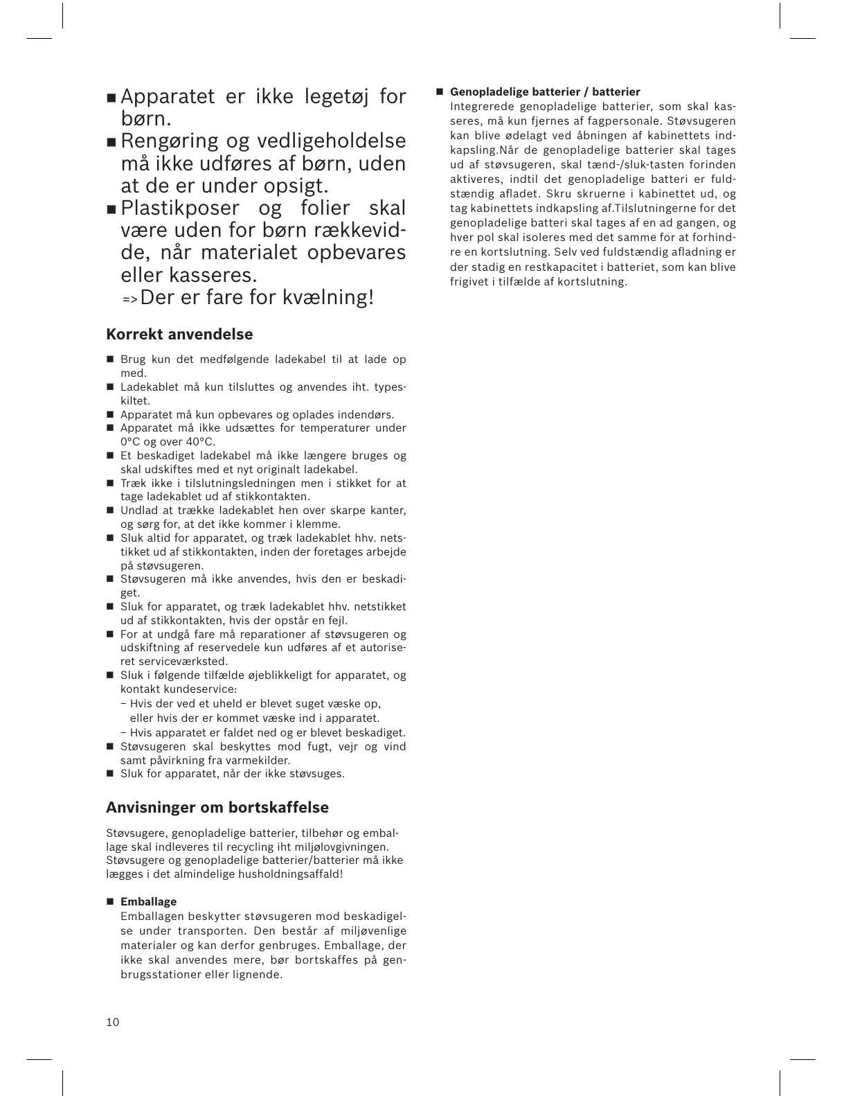 Støvsugere, genopladelige batterier, tilbehør og embal-