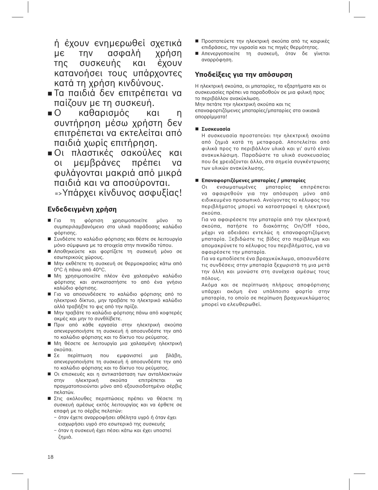 Μην πετάτε την ηλεκτρική σκούπα και τις