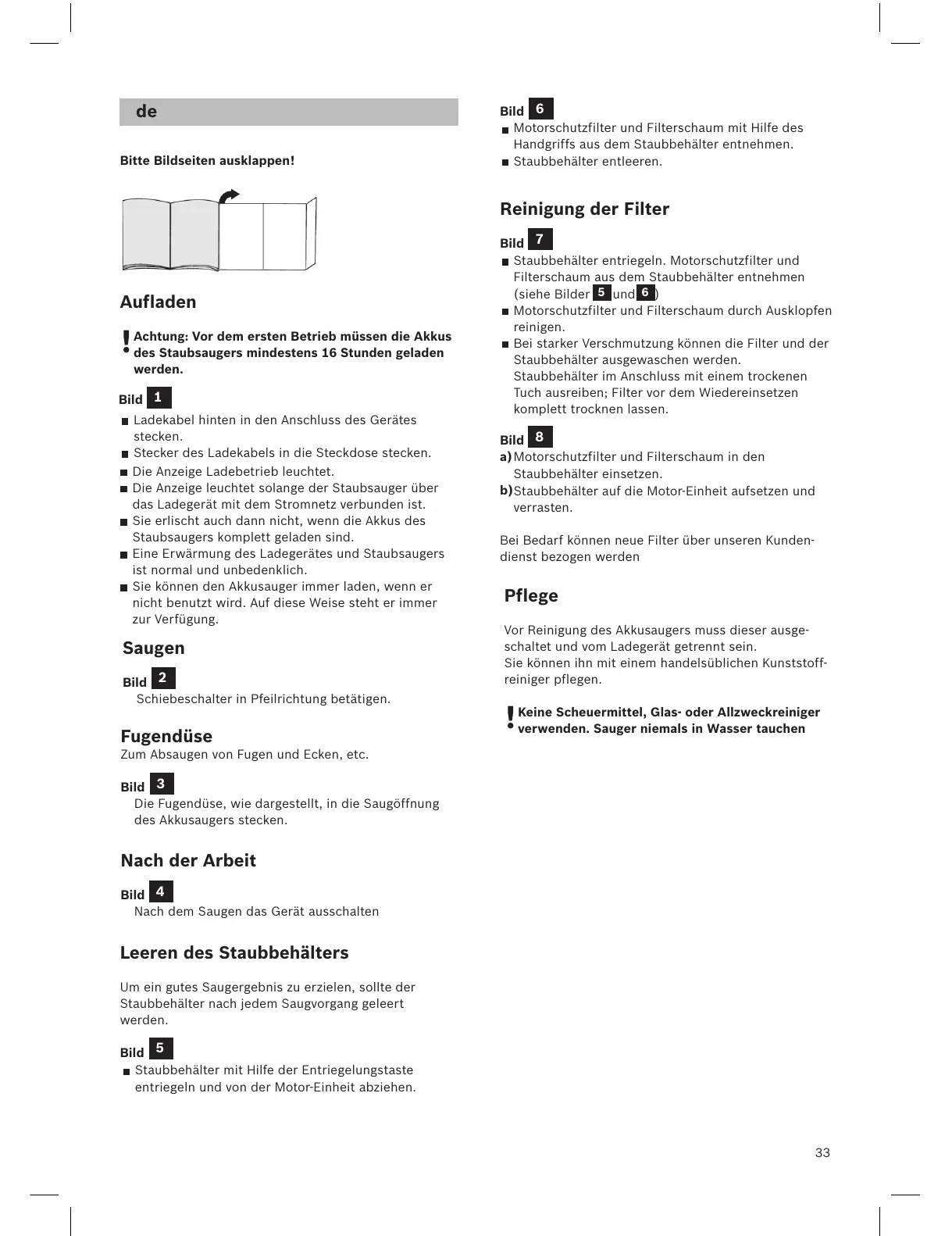 Vor Reinigung des Akkusaugers muss dieser ausge-
