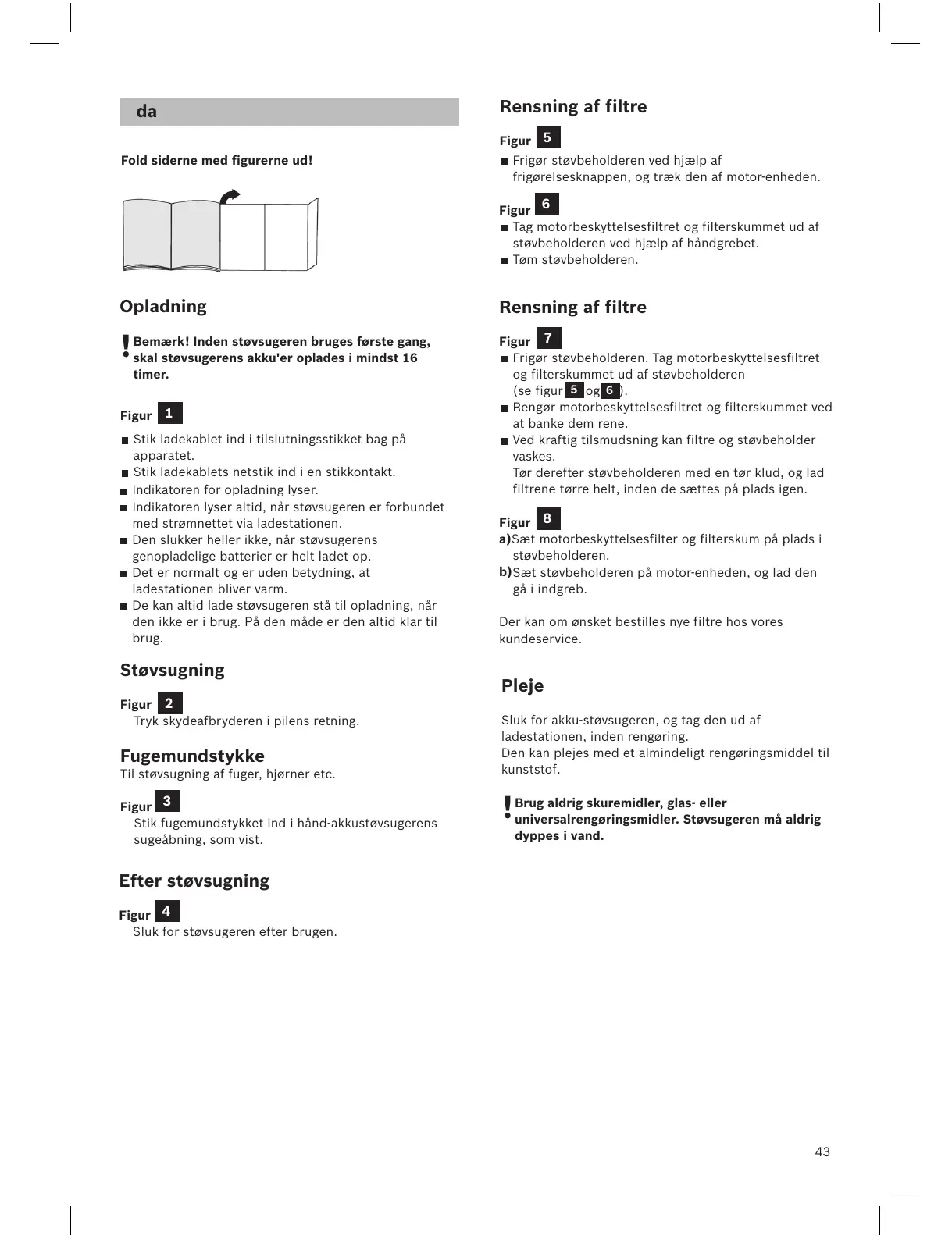 Bemærk: Støvsugeren skal altid slukkes, når den