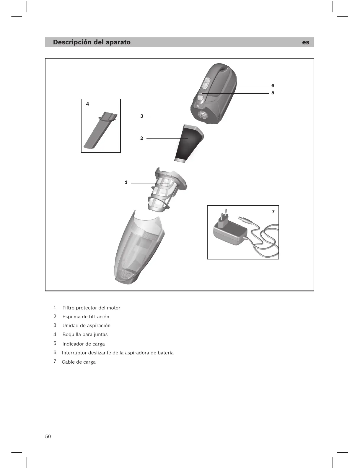 16 Pulsador del aspirador recargable