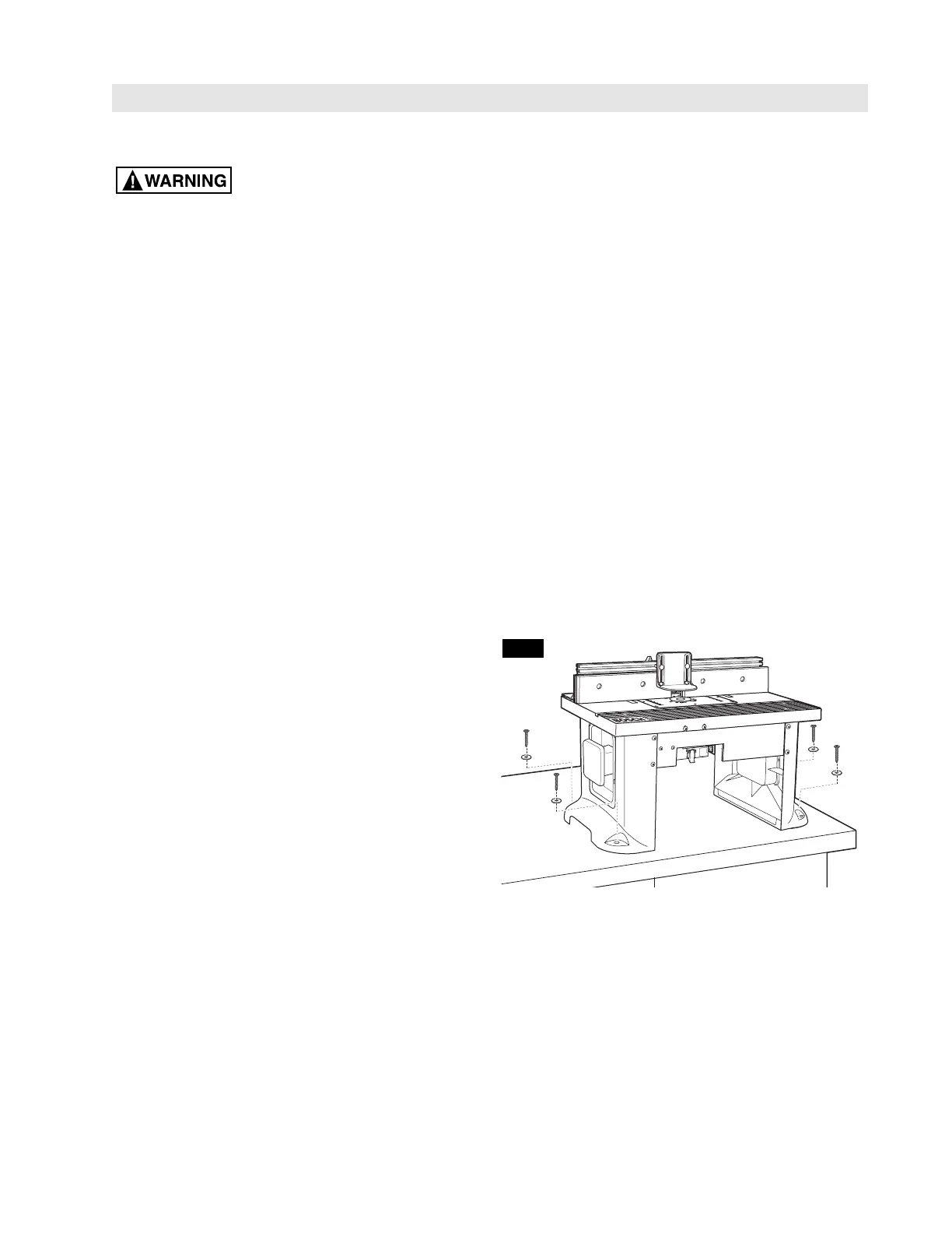 MOUNTING THE ROUTER TABLE TO A WORK SURFACE OR WORKBENCH