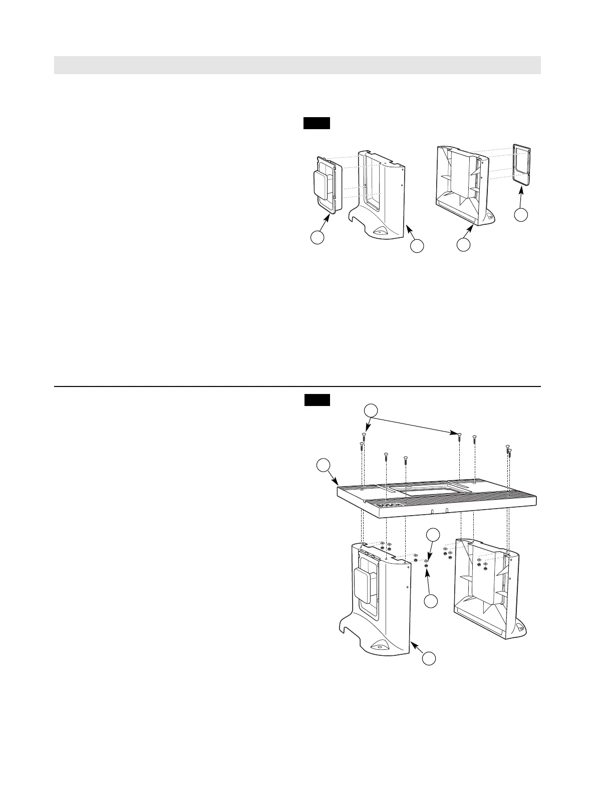 2. Assemblez une des pattes (6) de la table à toupie, tel