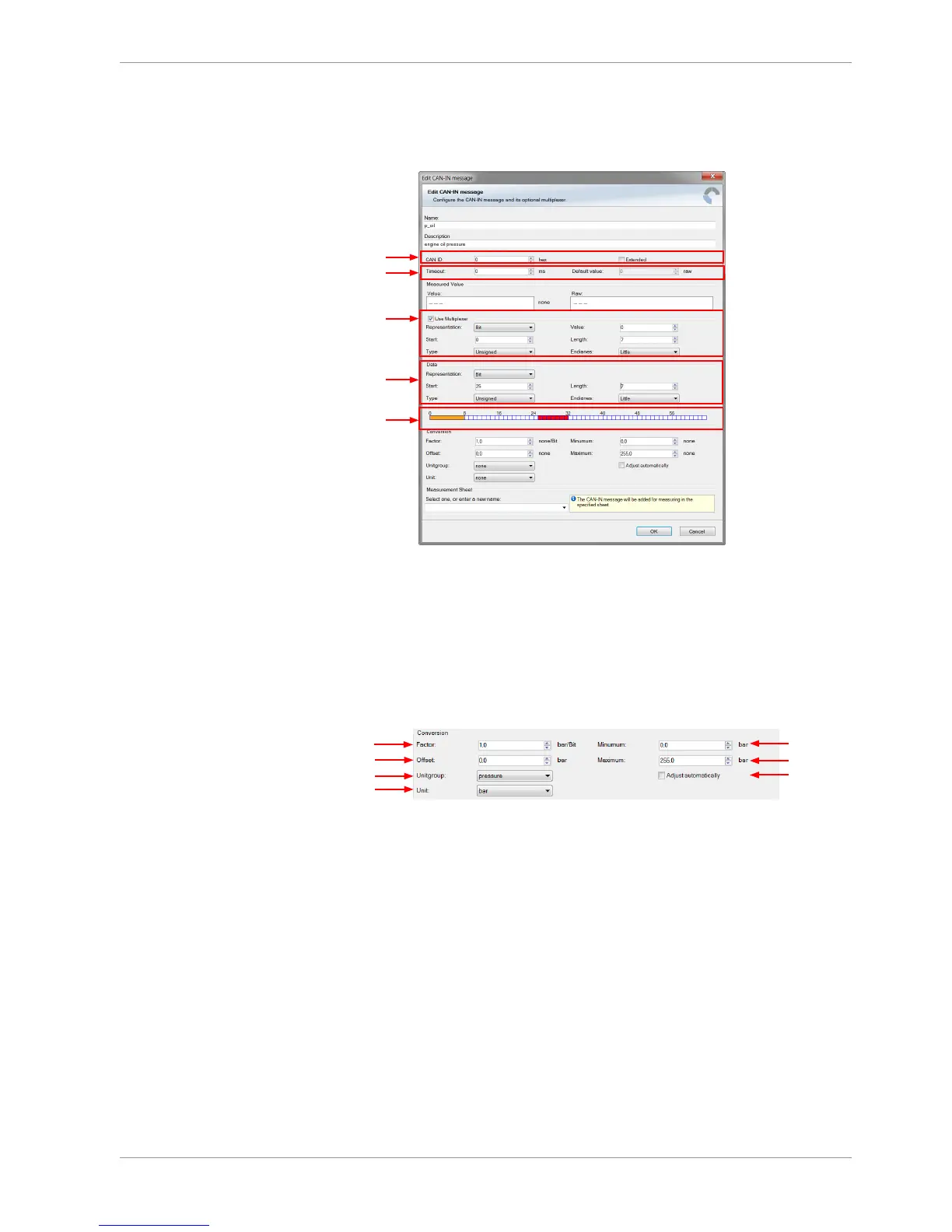 a) Enter CAN message ID. If extended IDs (29 bit) are used, check the box.
