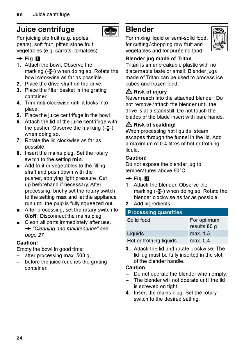 Bosch MultiTalent 8 - Juice Centrifuge & Blender Operation; Juice Centrifuge Operation; Blender Safety & Operation