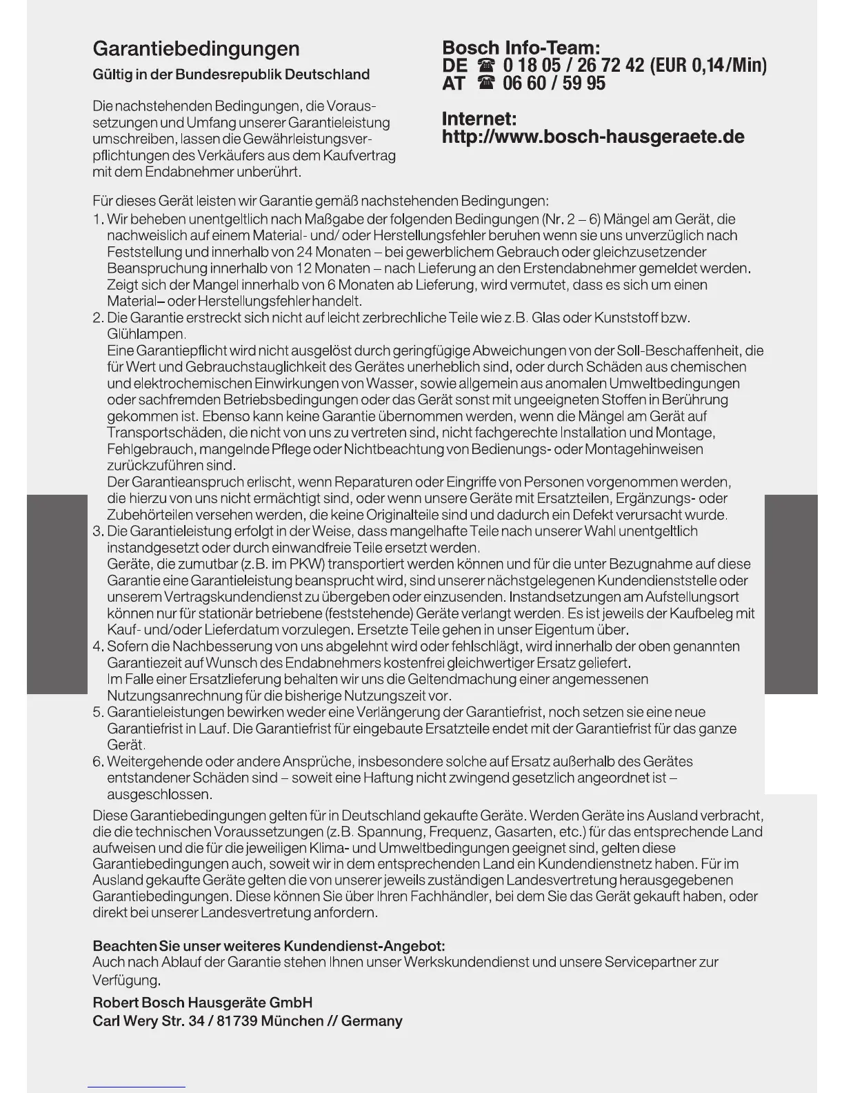 Bosch MUM8 - Warranty Conditions (Germany); General Guarantee Terms; Exclusions and Limitations; Service and Replacement Procedures