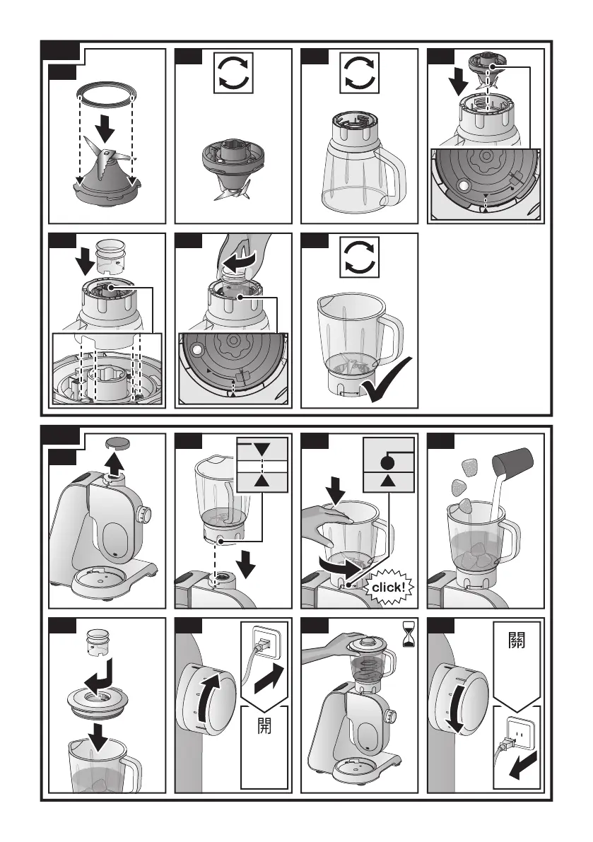 Bosch MUZ45MX1 - Assembly and Operation Guide; Blender Attachment Assembly Steps; Attaching and Starting the Blender