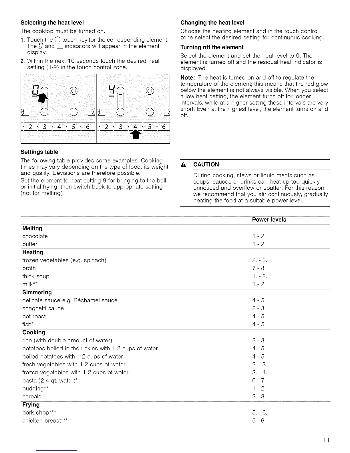 Set the element to heat setting 9 for bringing to the boil