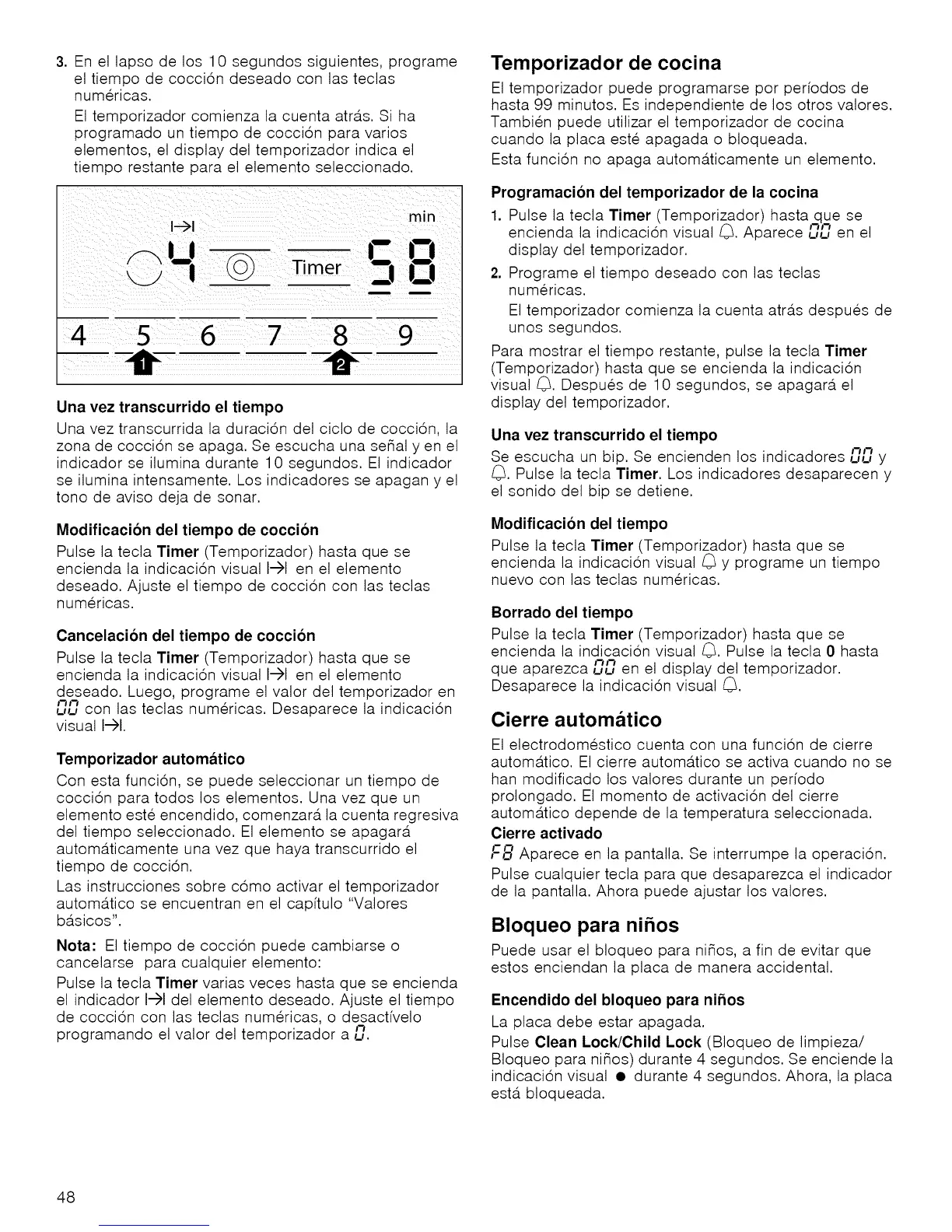Bosch NET8066SUC - Bloqueo para Ni_Os; Cierre Automatico; Temporizador de Cocina