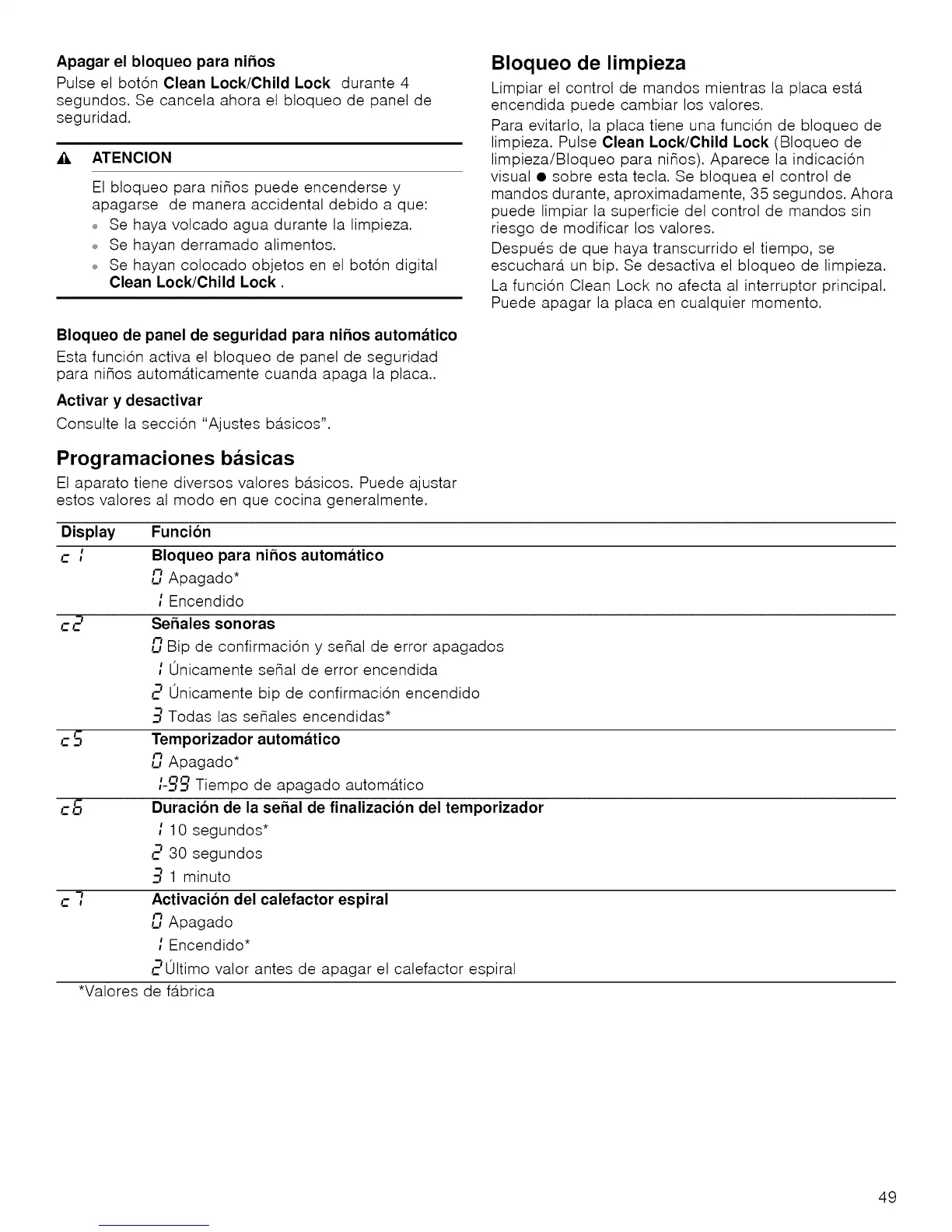 Pulse el boton Clean Lock/Child Lock durante 4