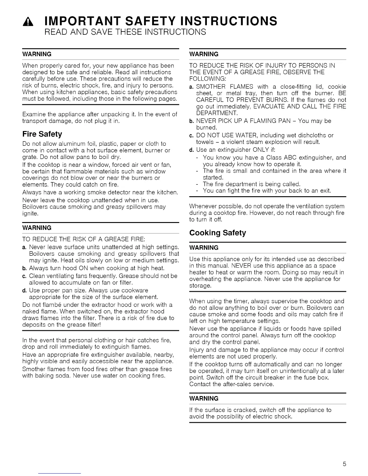THE EVENT OF A GREASE FIRE, OBSERVE THE