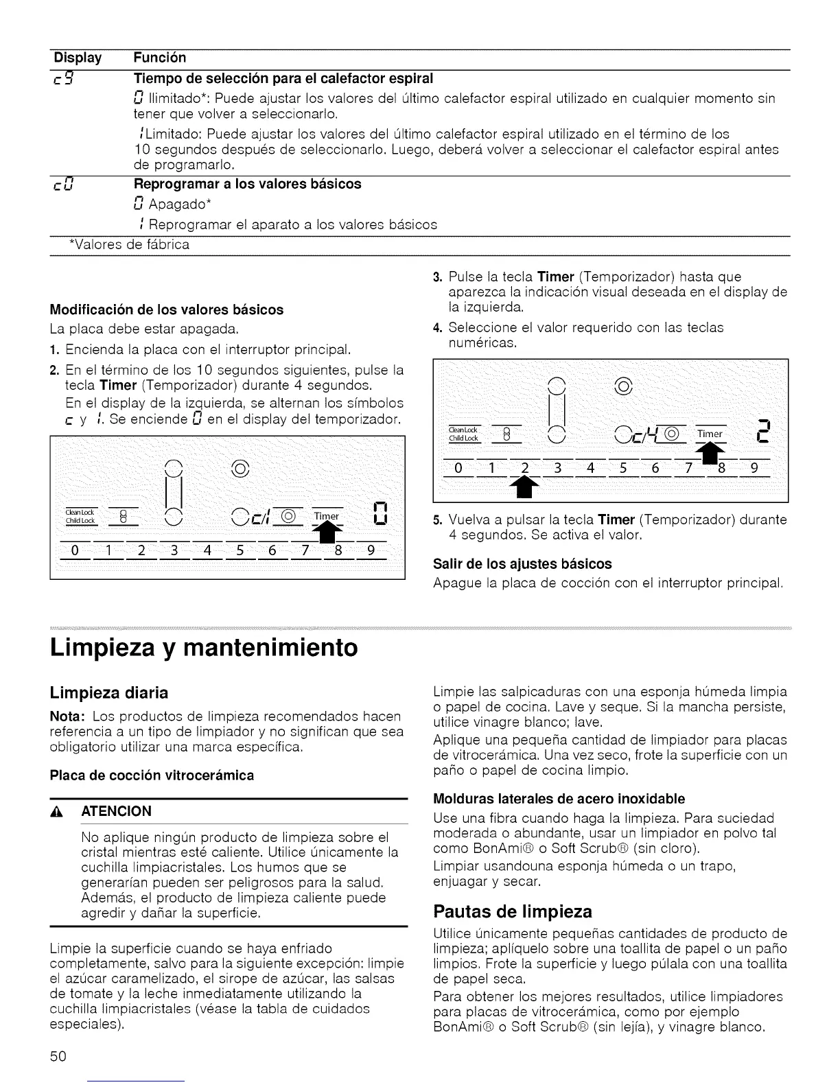 i Reprogramar el aparato a los valores ba.sicos