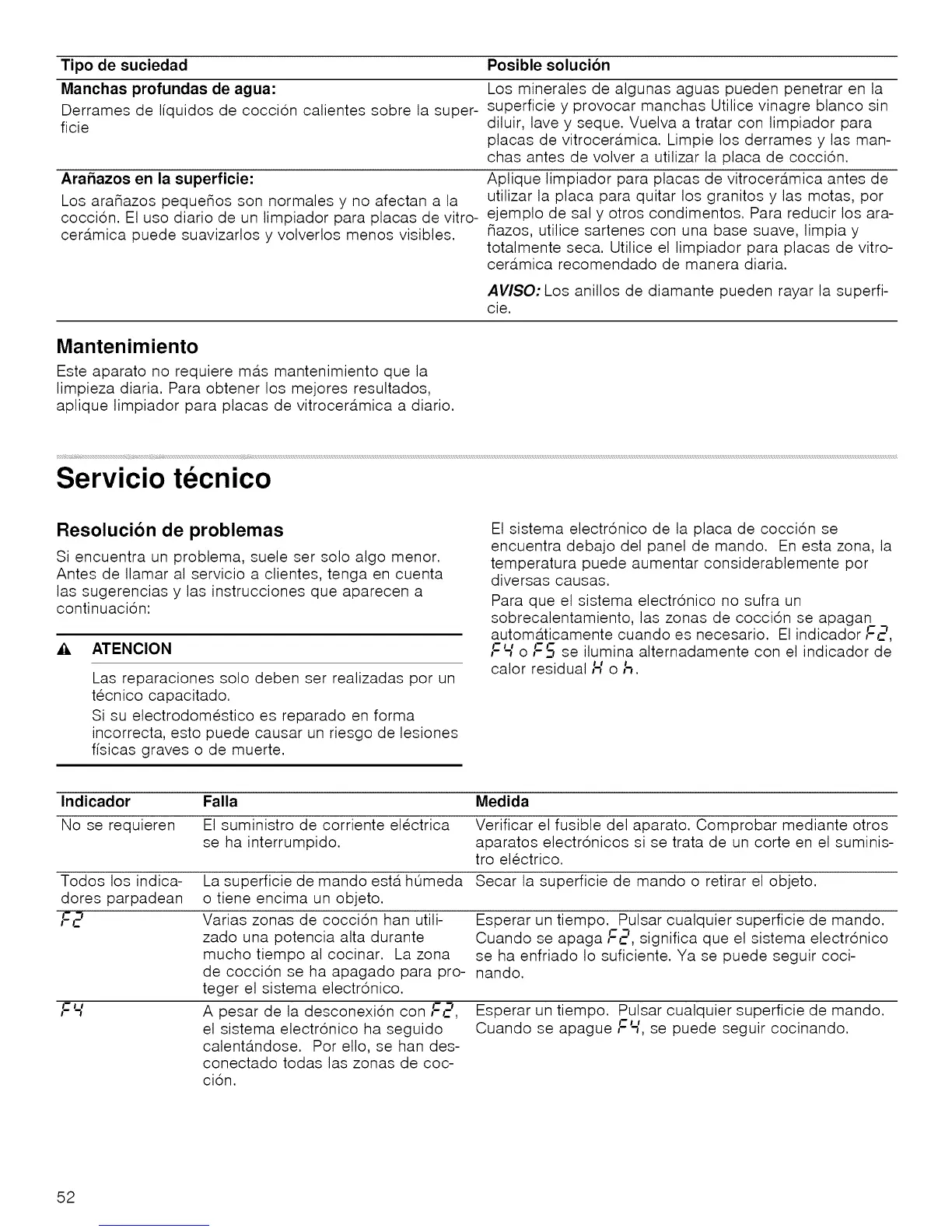 placas de vitrocera.mica. Limpie los derrames y las man-