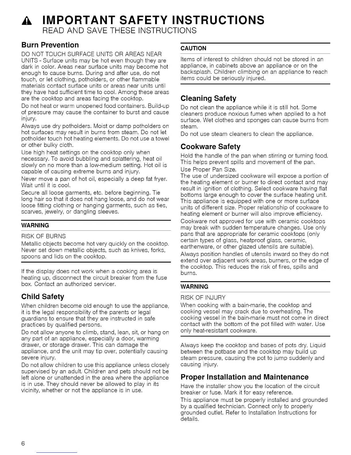 Always keep the cooktop and bases of pots dry. Liquid