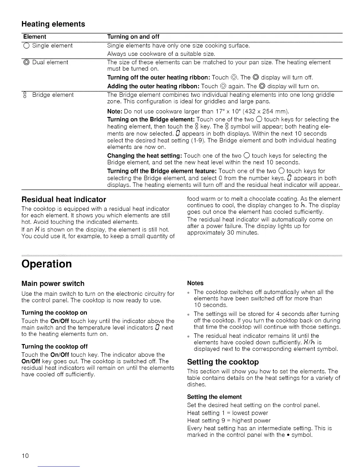 select the desired heat setting (1-9). The Bridge element and both individual heating