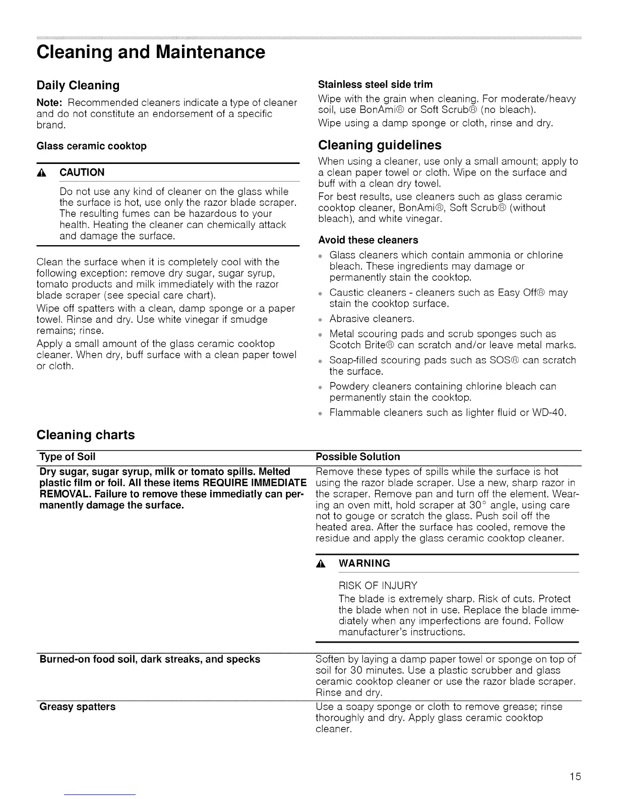 soil, use BonAmi® or Soft Scrub® (no bleach).